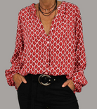Zeitloses Design: Der klassische Langarmstil und der V-Ausschnitt machen diese Bluse zu einem vielseitigen Stück für verschiedene Anlässe.