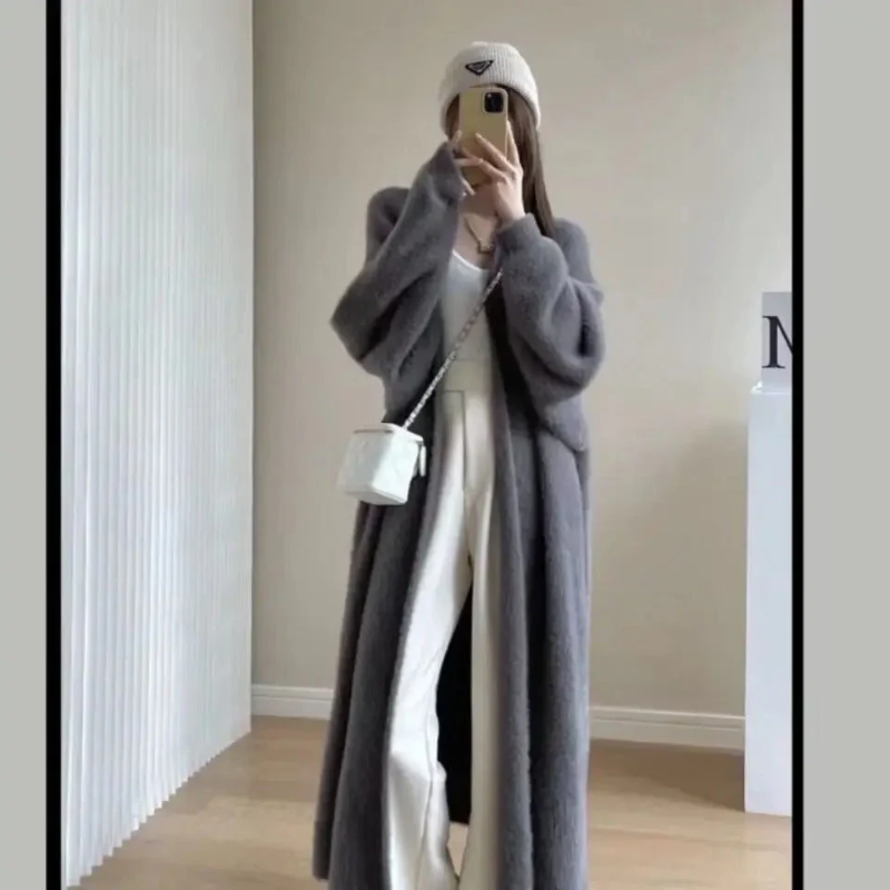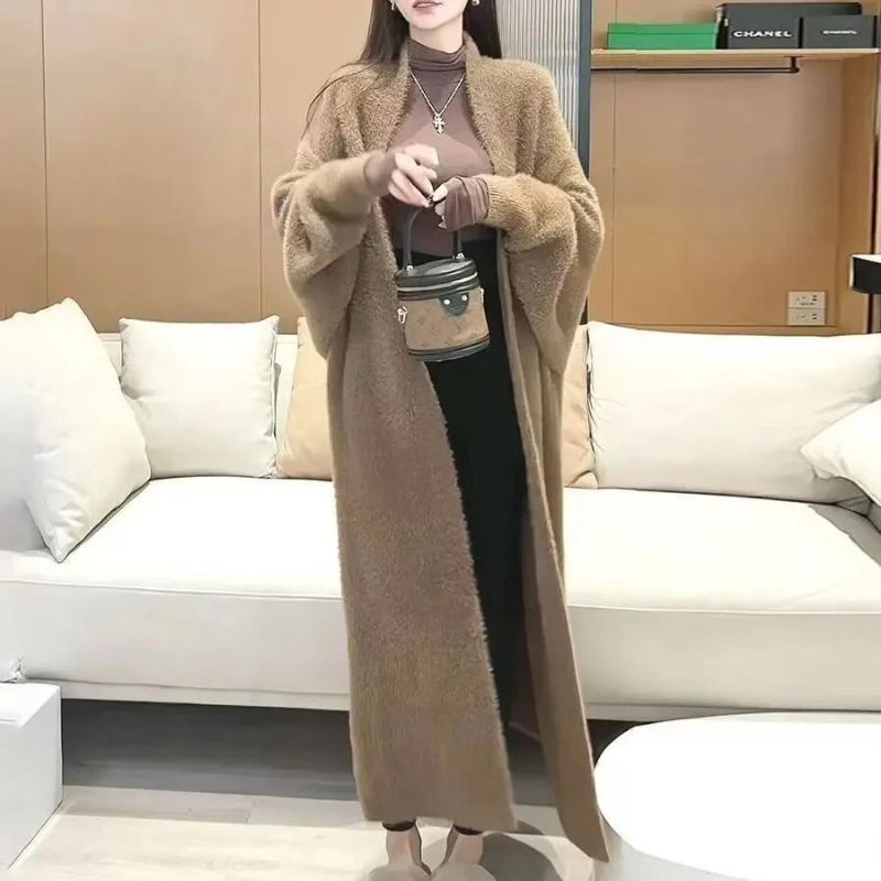 Elegantes Design: Die lange Silhouette und das raffinierte Strickmuster schaffen einen zeitlosen, schmeichelhaften Look für jeden Anlass.