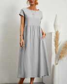 Mit dem Ivy Midi kleid, in dem Komfort auf zeitlosen Stil trifft, sind Sie für die Sonne gerüstet. Seine luftige Silhouette und sein vielseitiges Design machen es zum ultimativen Grundnahrungsmittel für Ihre Sommergarderobe. Von entspannten Nachmittagen am Strand bis hin zu lebhaften Gartenpartys - das Ivy Luftige Sommerkleider passt sich mühelos jedem Anlass an und hilft Ihnen, Selbstvertrauen und Charme auszustrahlen.