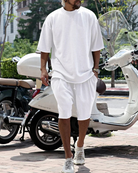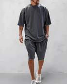 Mit dem Ramil Men's Summer Outfit kannst du der Hitze mit Selbstvertrauen und Komfort trotzen - dein ultimativer Favorit für mühelosen Stil bei warmem Wetter. Dieses zweiteilige Set kombiniert die klaren, übergroßen Linien der modernen Streetwear mit einem leichten Tragegefühl, das für Bewegung und Atmungsaktivität ausgelegt ist. Egal, ob du die Stadt erkundest, dich mit Freunden zu einem entspannten Wochenendbrunch triffst oder einen spontanen Ausflug an den Strand unternimmst, Ramil sorgt für einen eleganten Look und einen kühlen Körper. Dieses Outfit passt sich jeder Umgebung an und ist mehr als nur ein saisonales Grundnahrungsmittel - es ist ein unverzichtbares Lifestyle-Teil, mit dem Sie sich frisch und gepflegt fühlen und bereit sind für alles, was der Sommer Ihnen bringt.