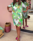 Setzen Sie ein mutiges Statement: Ziehen Sie alle Blicke auf sich mit einem lebhaften, kunstvollen Print, der sowohl auffällig als auch raffiniert ist.