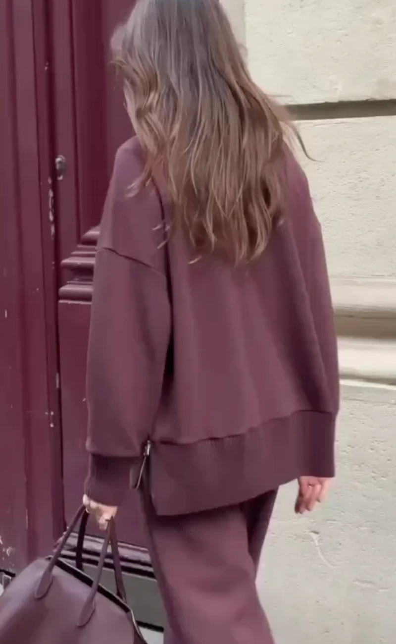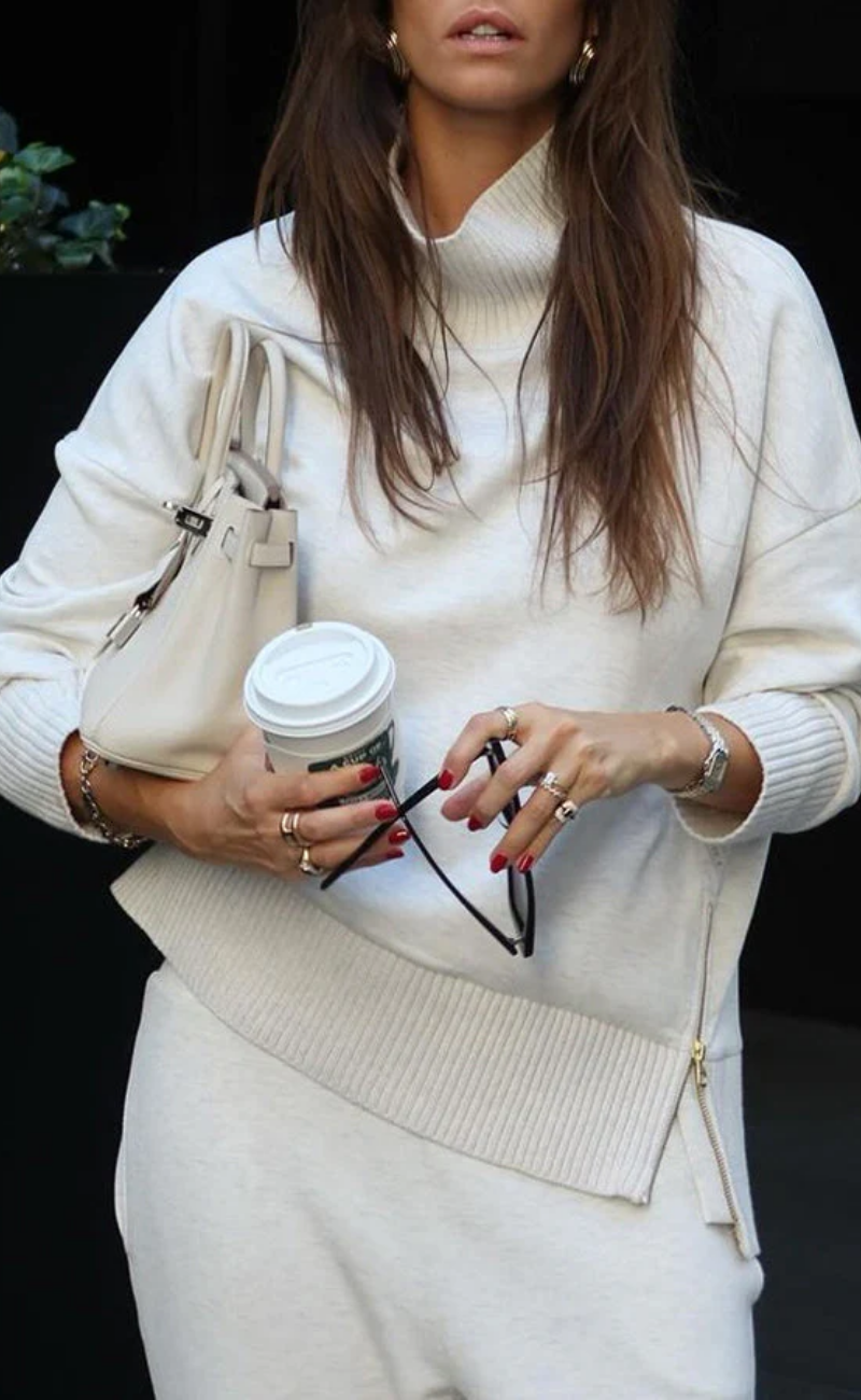 Schlüpfen Sie in einen Look, der sowohl raffiniert als auch entspannt ist. Das Claire Loungewear Set bringt minimalistische Raffinesse in Ihre Garderobe, perfekt für die moderne Frau. Egal, ob Sie einen Kaffee trinken gehen oder zu Hause faulenzen, mit diesem Set sind Sie immer perfekt gekleidet, ohne sich anzustrengen. Es zieht die Blicke auf sich und bietet gleichzeitig Komfort - Stil, Funktion und Eleganz in einem luxuriösen Set.