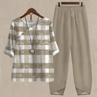 Erlebe unvergleichlichen Stil und Komfort mit dem Delancy Elegant Set, bestehend aus einem perfekt abgestimmten Oberteil und einer Hose. Dieses vielseitige Sommer Outfit strahlt Raffinesse aus und bleibt dabei unglaublich bequem – ideal für entspannte Stunden zu Hause oder legere Anlässe. Genieße einen Look, der raffinierte Details mit Alltagstauglichkeit verbindet – dein neues Lieblingsoutfit wartet auf dich!