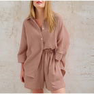 Klassischer zweiteiliger Stil: Das Set besteht aus einer Bluse mit 3/4-Ärmeln und einer kurzen Hose und bietet einen schicken, koordinierten Look, der perfekt für warmes Wetter ist.