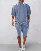 Mit dem Ramil Men's Summer Outfit kannst du der Hitze mit Selbstvertrauen und Komfort trotzen - dein ultimativer Favorit für mühelosen Stil bei warmem Wetter. Dieses zweiteilige Set kombiniert die klaren, übergroßen Linien der modernen Streetwear mit einem leichten Tragegefühl, das für Bewegung und Atmungsaktivität ausgelegt ist. Egal, ob du die Stadt erkundest, dich mit Freunden zu einem entspannten Wochenendbrunch triffst oder einen spontanen Ausflug an den Strand unternimmst, Ramil sorgt für einen eleganten Look und einen kühlen Körper. Dieses Outfit passt sich jeder Umgebung an und ist mehr als nur ein saisonales Grundnahrungsmittel - es ist ein unverzichtbares Lifestyle-Teil, mit dem Sie sich frisch und gepflegt fühlen und bereit sind für alles, was der Sommer Ihnen bringt.