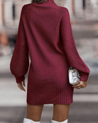 - Moderne Details: Die Bischofsärmel verleihen dem Mini-Strickkleid eine elegante, zeitgemäße Note.