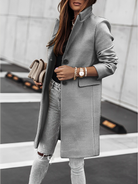 Stilvolle Eleganz: Lange Silhouette im klassischen Trenchcoat-Stil. Perfekt, um einen eleganten und gepflegten Look zu kreieren.