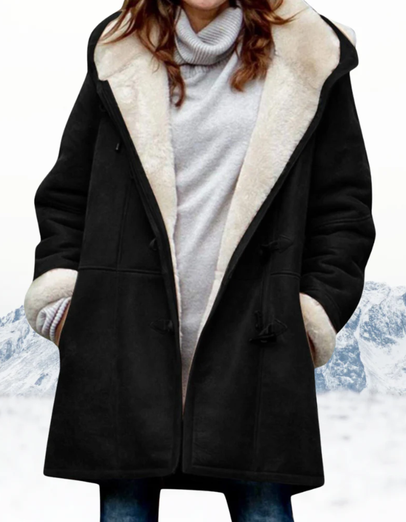 Hüllen Sie sich in Wärme und zeitlosen Stil mit der Meadow Schwarz Winterjacke. Perfekt für kalte Tage bietet diese Warme Winterjacke eine luxuriöse Kombination aus Komfort und Eleganz. Mit ihrer kuscheligen Kapuze und der taillierten Passform ist sie sowohl praktisch als auch schmeichelhaft – ideal für legere Ausflüge oder besondere Anlässe. Entworfen, um Sie warm und stilvoll zu halten, ist sie das ultimative Must-have für Ihre Wintergarderobe.